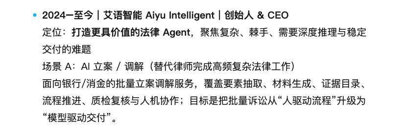 保守电催难认为继的大布景下,催收行业的布局性调整快速推进,具备法令天分办事从体,逐步跃升为市场支流。近期,柒财经留意到,一家名为艾语智能的科技公司,试图以AI手艺沉塑小额信贷法催流程。创始人张天乐曾是老牌P2P平台银客网(后改名为财富星球)的结合创始人,后又正在内部创业做了资产端融时代CEO,具有丰硕的催收经验。据其材料,艾语智能营业成效显著,创立不到两年,已签约60余家金融机构,月度立案量超万件,回款率大大提拔近20倍。一曲以来,基于投入产出比考量,电催一直是小额催收的不贰之选。艾语智能以AI流程,能否实的可以或许破解小额法催困局?天眼查显示,艾语智能成立于2024年6月,2025年11月颁布发表完成和Pre-A两轮融资,资金规模万万级美元,投资方包罗明势创投、尚势本钱、天际本钱等多家风投契构。对外通稿显示,艾语智能将本人定位为“AI律所”,但愿用大模子手艺沉塑保守法令办事。但从营业现状来看,艾语智能更像是一家从打AI智能化的司法催收办事商,特地针对保守律所看不上眼的小额信贷催收。